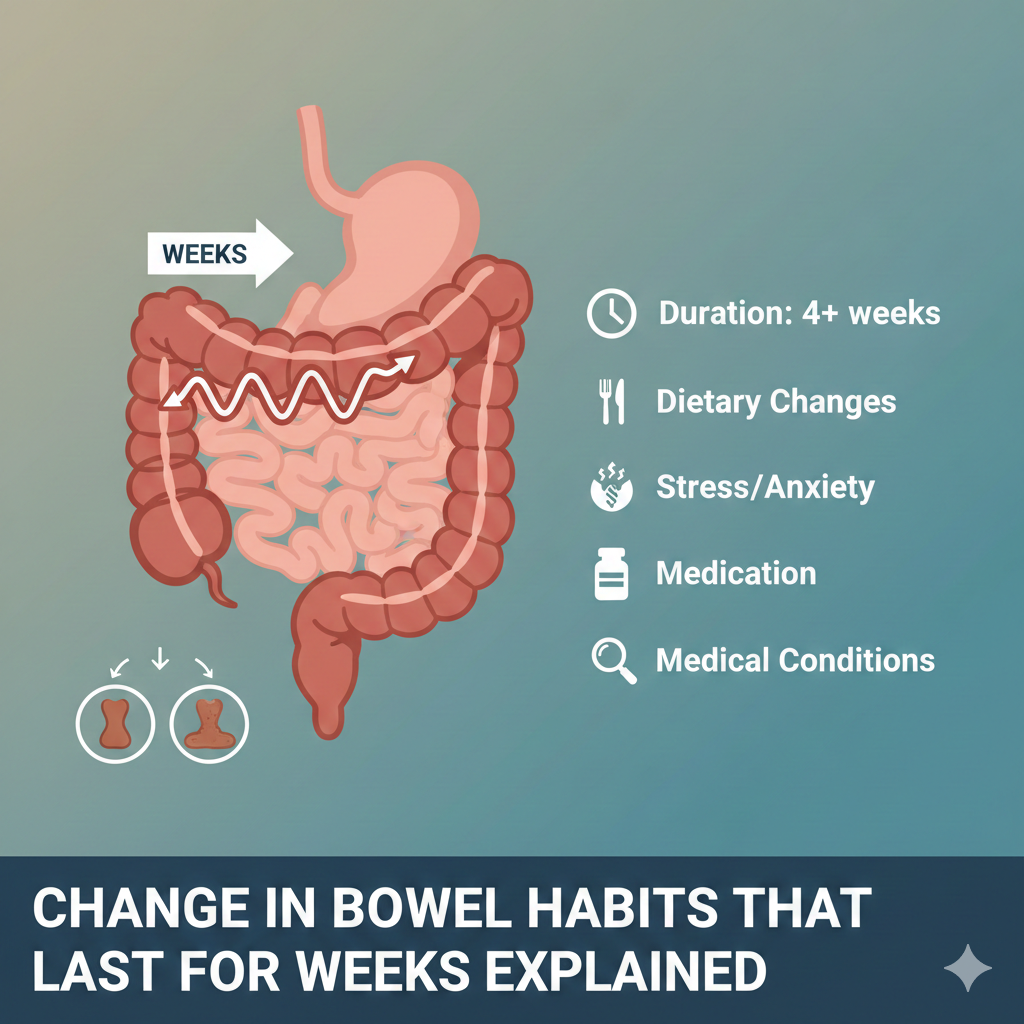 A change in bowel habits that lasts for weeks is usually the result of repeated daily influences, not sudden illness. By understanding patterns, avoiding overreaction, and adjusting routines thoughtfully, most people improve. When changes escalate or combine with warning signs, professional guidance is appropriate—but panic rarely helps. change in bowel habits