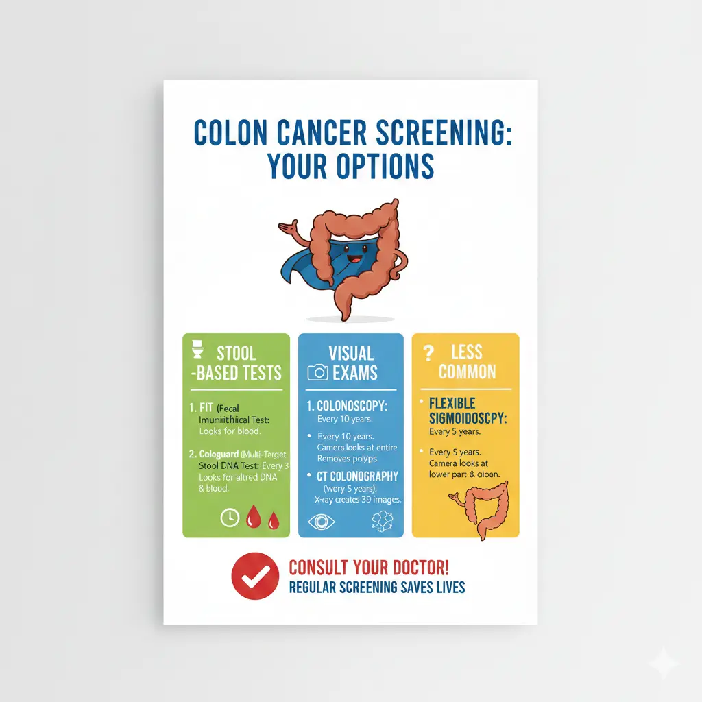 Colon cancer screening tests save lives not by reacting to symptoms, but by acting before symptoms appear. Understanding how each test works empowers you to choose an option that fits your risk, comfort, and consistency. When screening is done on time and repeated as recommended, colon cancer becomes one of the most preventable major cancers.