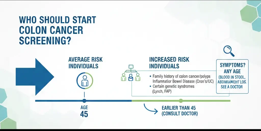 Most average-risk adults are advised to start screening in mid-adulthood, while higher-risk individuals may need earlier or more frequent testing.