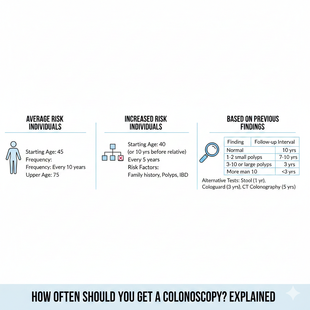 How often you should get a colonoscopy depends on who you are, what was found, and how your risk profile looks—not on a fixed calendar. For many people, long intervals reflect effective prevention. For others, closer follow-up provides protection. Understanding this balance replaces fear with confidence and helps screening work the way it’s meant to.