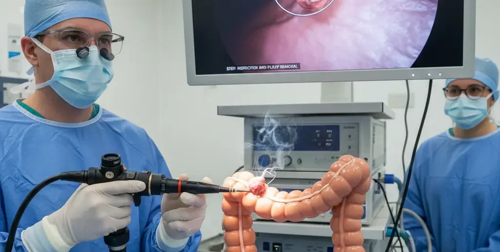 Step: Inspection and Polyp Removal During a Colonoscopy