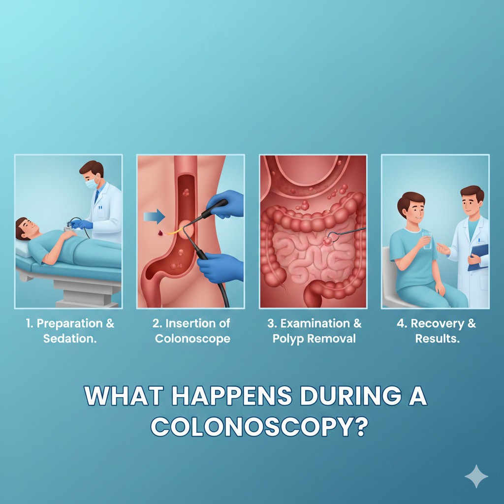 During a colonoscopy, a doctor uses a flexible camera to examine the inside of the colon, check for abnormalities, and remove polyps if found. The procedure is usually short, painless due to sedation, and highly effective for prevention.