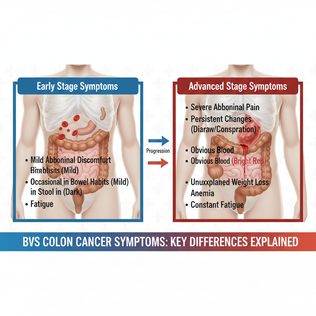 IS Bvs Colon Cancer Symptoms: Key Differences Explained. IBS and colon cancer symptoms can overlap, but their patterns, progression, and accompanying signs are very different. IBS symptoms tend to fluctuate, while colon cancer symptoms usually worsen steadily and combine with red flags.